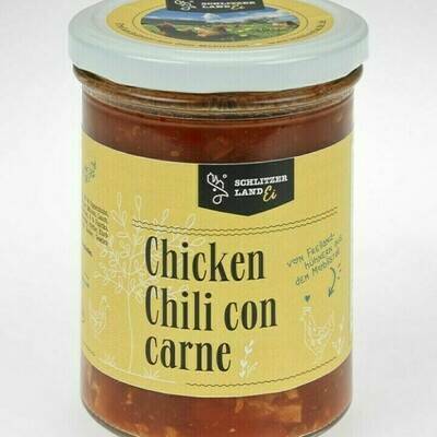 40 % Tomaten (fein gehackt), 30 % Suppenhuhn, 10 % Geflügelfond - Trinkwasser, Suppenhühner,