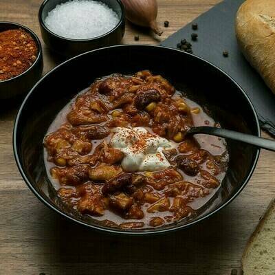 Möhren, Lauch, Sellerie, Meersalz, Liebstock, 5 % Kidneybohnen, 5 % Paprika, 5 % Mais, Zwiebeln,