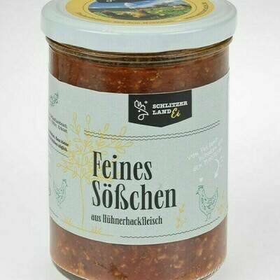 35 % Geflügelhackfleisch (Suppenhuhn), 35 % gehackte Tomaten, 10 % passierte Tomaten, 10 %
